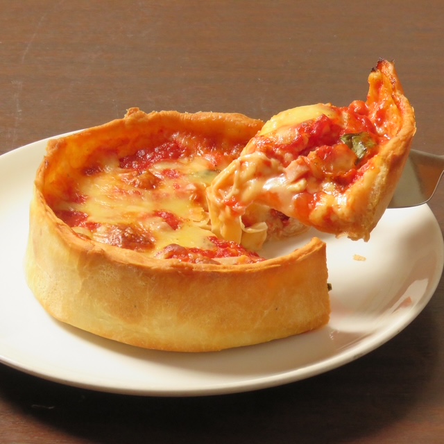 シカゴピザ 事前予約制 単品 Sサイズ (直径 約15cm 高さ 約 4㎝) 約2~3人前 ¥1,800 Mサイズ (直径 約20cm 高さ 約 4㎝) 約3~6人前 ¥ 2,800 (フレッシュトマト、ジャガイモ、ベーコン、ピザソース、チーズ バジル別添え) シカゴピザ セット 事前予約制 お一人様 ¥ 1,650 2名様より (シカゴピザお取り分け ソフトドリンク、ミニサラダ、プチデザート付き) お子さまプレート ¥ 680円(税込) ミニハンバーグ、唐揚げ、ポテトフライ、トマトパスタ、ピザ +100円でソフトドリンク +100円でアイスクリーム 付けられます。